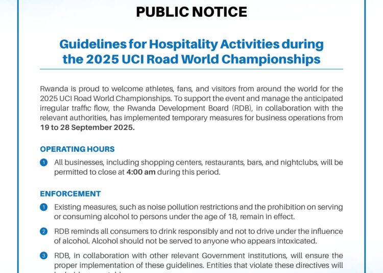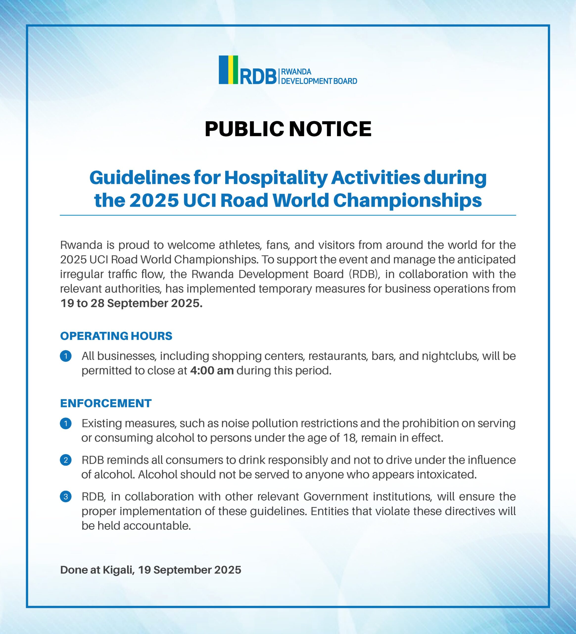 Ni icyemezo gifashwe nyuma y’uko u Rwanda rwakiriye isiganwa ry’isi ry’amagare (UCI) rizatangira ku wa 21 Nzeri 2025 kugeza ku wa 2028 Nzeri 2025. Mu ijoro ryo ku wa 20 Nzeri 2025 inzira zose zizanyurwamo abasiganwa barazicamo bimenyereza.