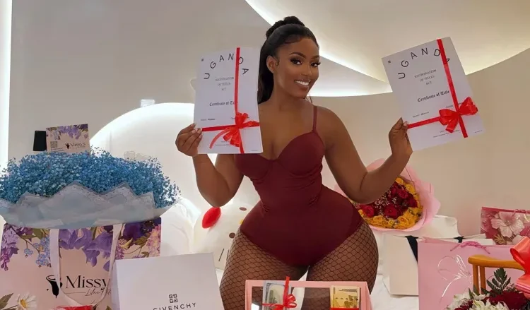 Ku mafoto yashyize kuri Instagram ku cyumweru, Gloria Bugie yanditse agira ati: “Oya we, burya ndakundwa cyane. Biriya navuze ngo impano zahabwa n’abakunzi banjye, ndashaka ko bazama ibyangombwa by’ubutaka n’amafaranga ku munsi w’abakundanye, nabivuze mu buryo bwo gutebya ntabwo nari nkomeje.