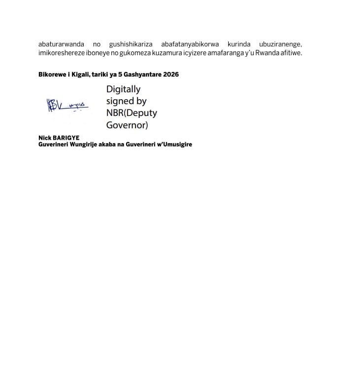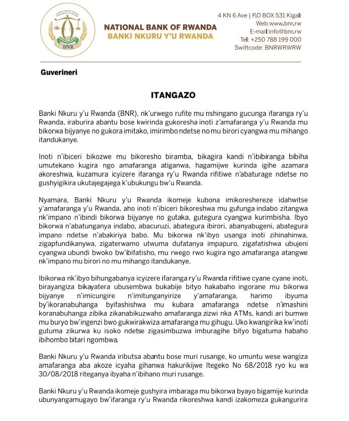Nk’uko bimeze mu Rwanda, Banki Nkuru y’u Rwanda nayo yashyize hanze itangazo ribuza abaturage gukoresha amafaranaga mu birori cyagwa mu bikorwa byo kurimbisha impano nko kuyafunga mu ndabo n’ibindi bishobora kayatesha agaciro.