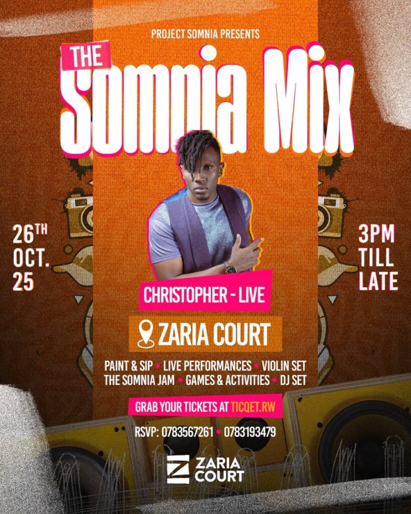 Uyu muhanzi azaririmba mu gitaramo ‘The Somnia Mix’ kizabera muri Zaria Court ku wa 26 Ukwakira 2025.
