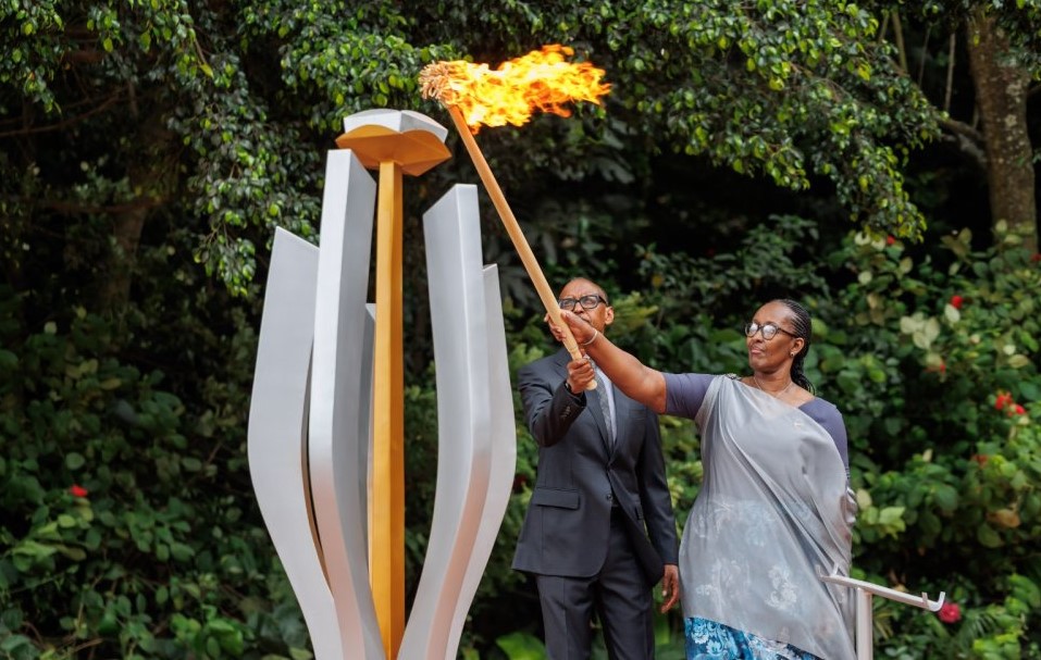 Perezida Paul Kagame na Madamu Jeannette Kagame batangije igikorwa cyo Kwibuka ku nshuro ya 32 Jenoside yakorewe Abatutsi mu 1994, bacana urumuri rw’icyizere rwerekana ahazaza h’Abanyarwanda.