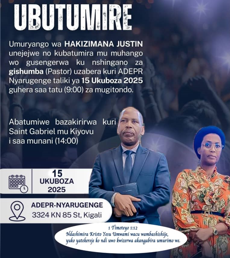 Nk’uko bigaragara mu rwandiko rw’ubutumire, Umuhango wo kumusengera mu nshingano za gishumba uteganyijwe ku itariki ya 15 Ukuboza guhera saa za mu gitondo ku itorero rya ADEPR Nyarugenge.